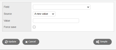 - Select the Force save checkbox to override the validation of required or restricted fields during the mass update process. If you do not select this checkbox and a record has validation errors, then it will not be saved.