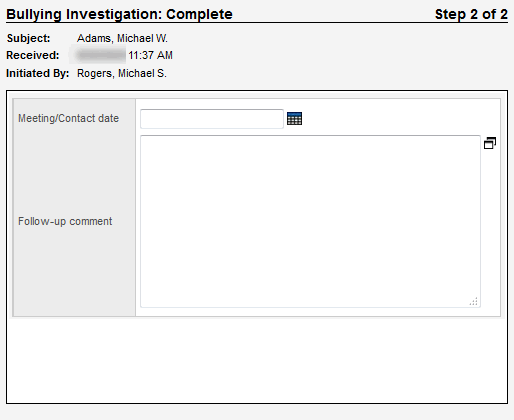 2. In the Follow-up comment field, type any feedback or concerns given by the parents about the investigation.