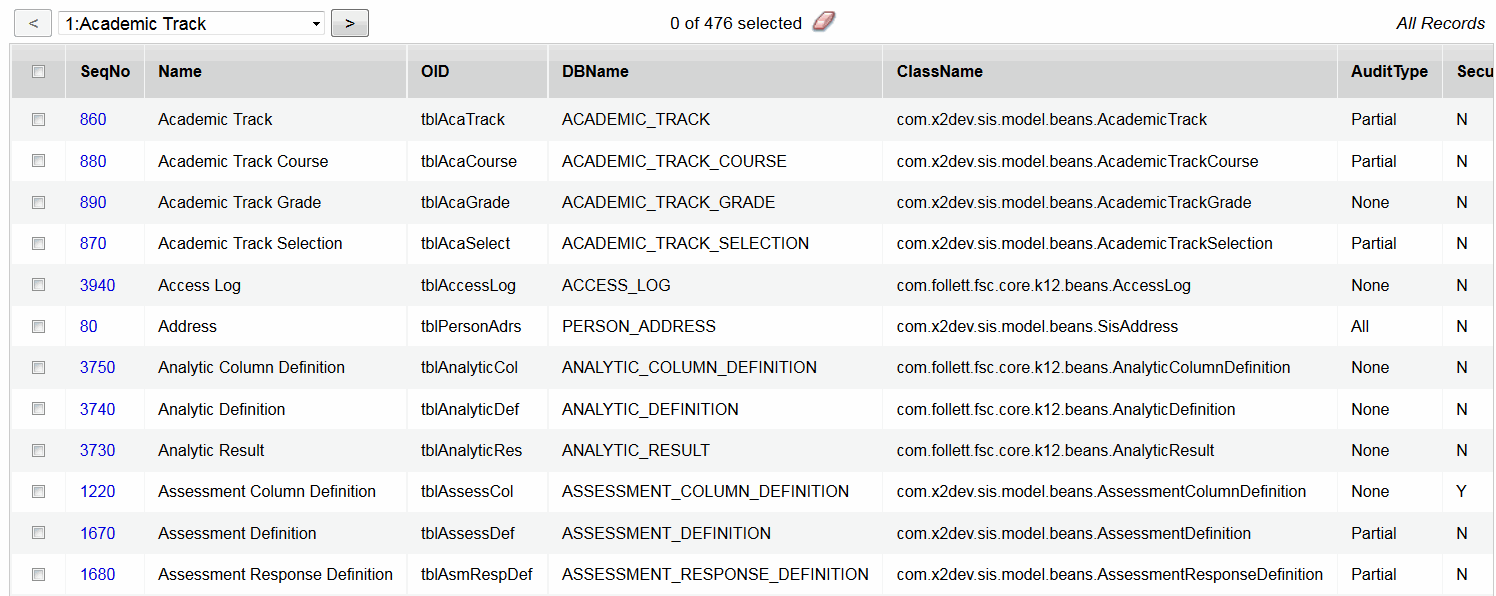 3. Click the Data DictionaryClosed organizes the tables and fields that house all of your district's administrative information side-tab to expand it. The list of system tables appears.