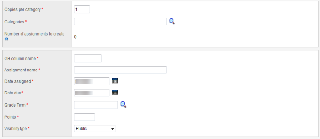 Example: If you entered 2 at Copies per category, then selected two categories, you will create four new assignments, two for each category.