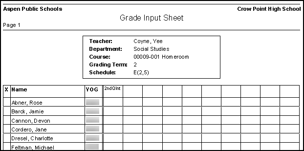 Or, print Grade Input sheets after grades are entered to keep a record of the grades teachers enter in the Gradebook in the Staff view.