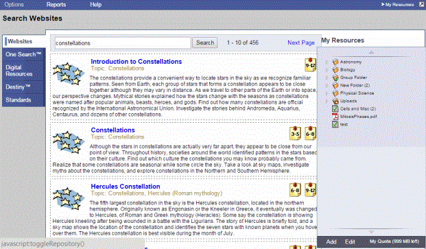 Drag and drop the resources your search tools find to the appropriate folders in My Resources. Then, you can share this content by dragging and dropping it to a Group Resources folder, which group members can access on the group's Page, or to a folder for you to drag and drop into a specific assignment's details.