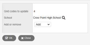 2. Select Add to add this school to the grid codes, or Remove to remove this school from the grid codes.
