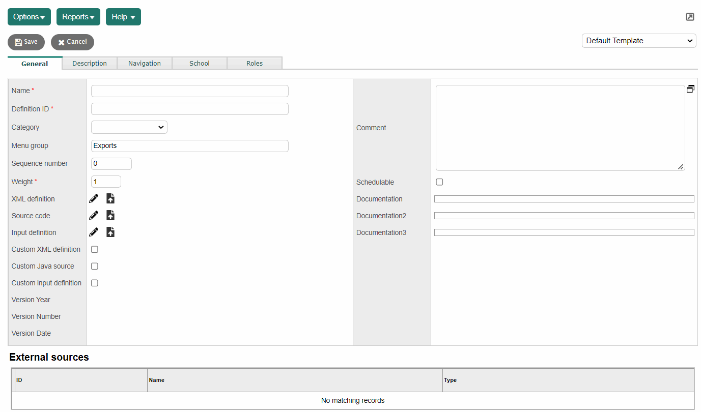 1. If logged on to the District view, you can add external sources (sources of re-usable code) that will be used by the export. To do so: