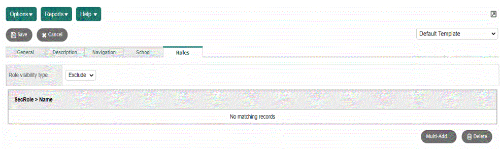 1. To define which user roles can run the export from the Options menu, click the Roles sub-tab.